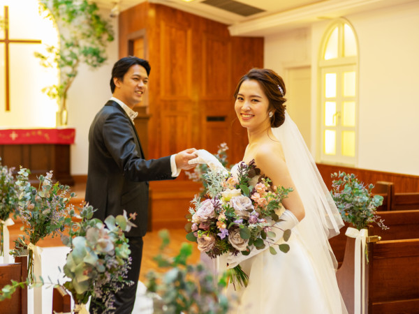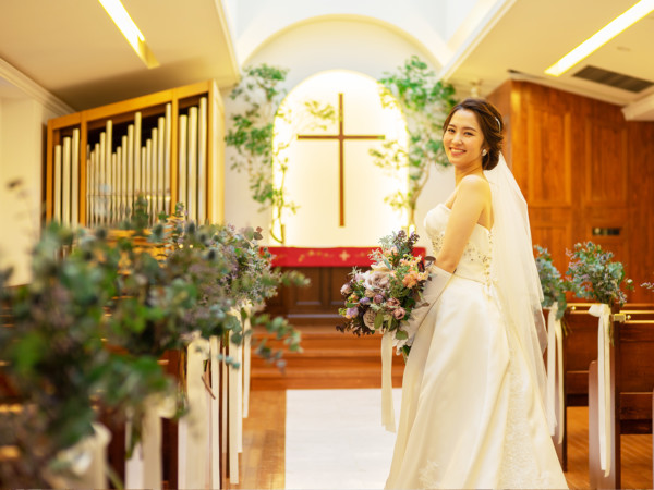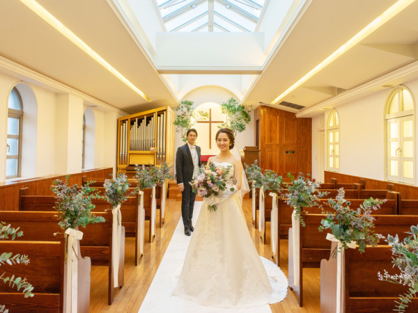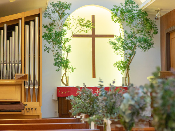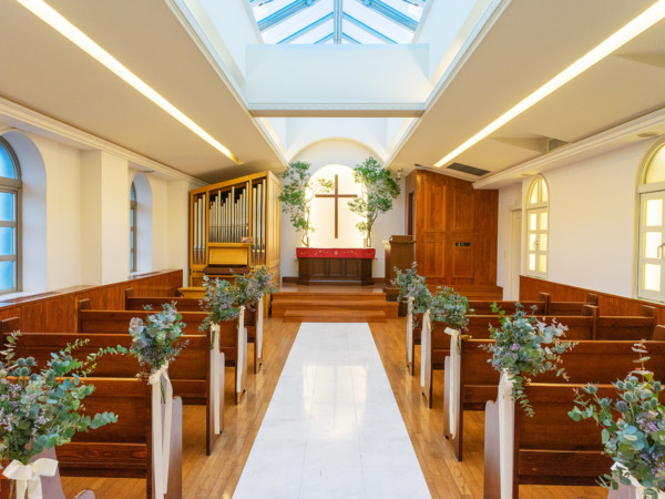 ドイツ製のパイプオルガンの音色と、天窓から差し込む優しい光に包まれながら、本格的なキリスト式を挙げることができます。