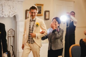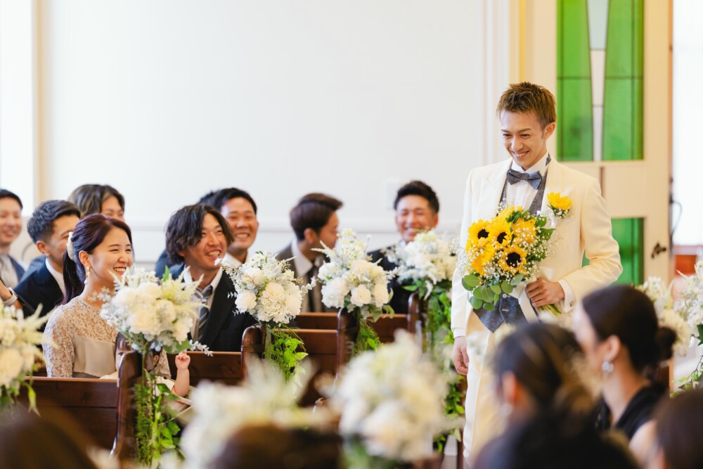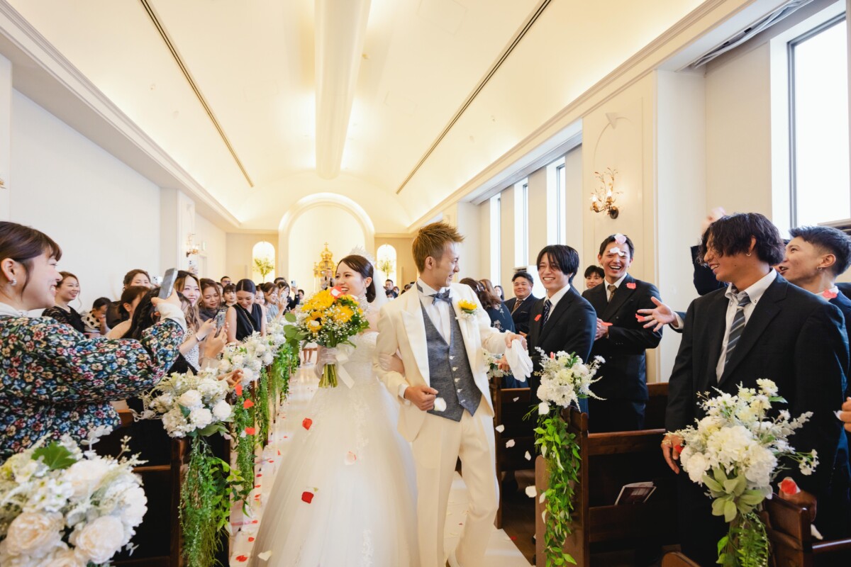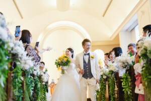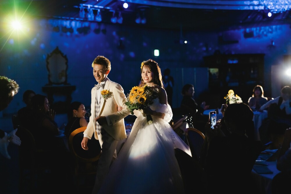 挙式、披露宴で入場した際に出席いただいたゲストの笑顔がとても印象的でした!