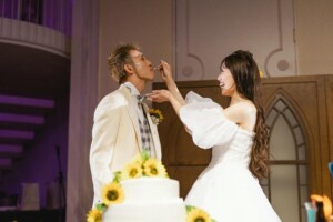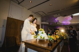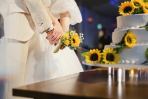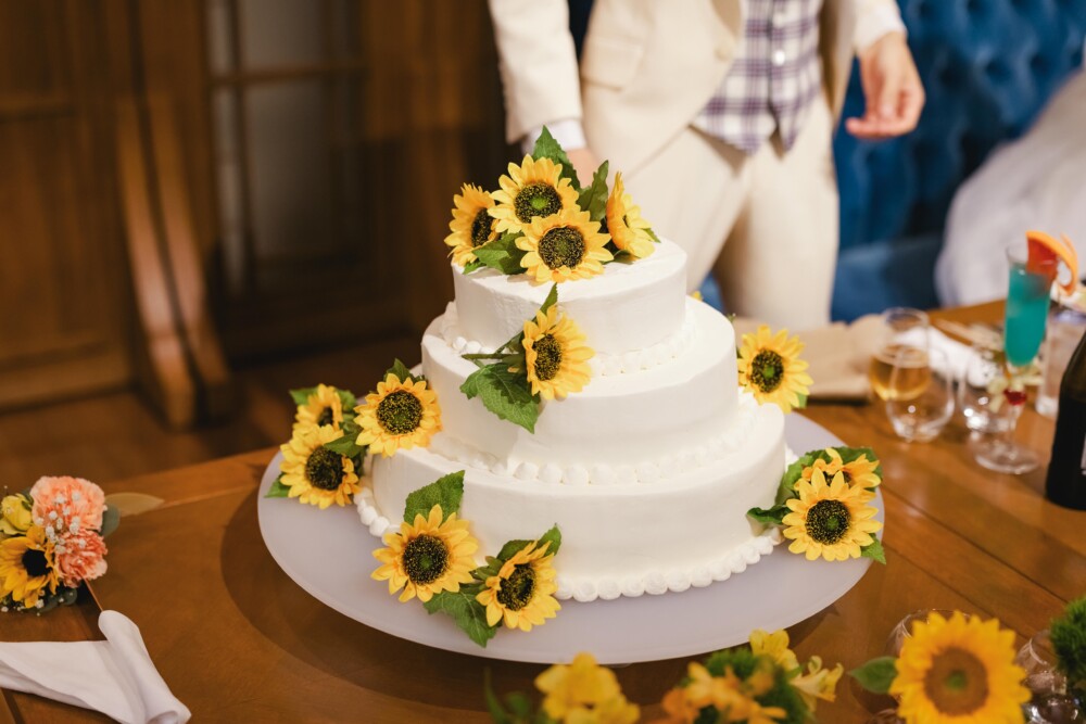 また、ウエディングケーキにもこだわりケーキには向日葵を装飾して世界に1つしかない二人だけのケーキを準備しました!